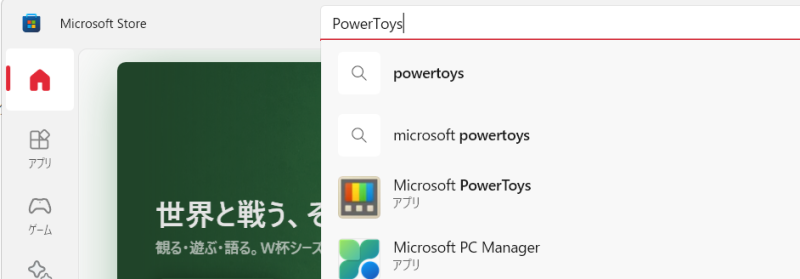 ストア内の検索ボックスに「PowerToys」と入力します。