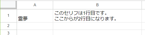 また、一つのセルの中でセリフを改行したい場合は、キーボードの「Alt」を押しながら「Enter」を押すことで、セル内改行ができます。